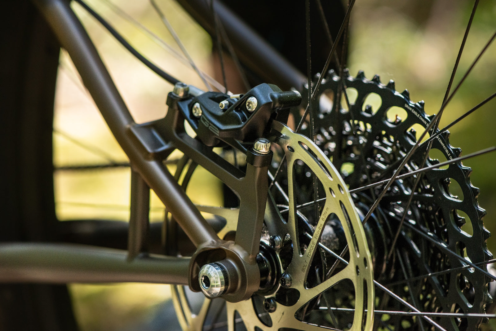 With a 52mm chainline (SRAM boost standard), the Rootdown [Series VI] can fit up to a 34-tooth chainring.